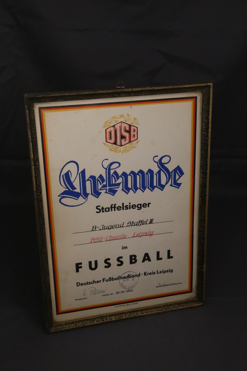 Genau, sie alle lagern im Fundus für unser späteres Museum. Die BSG Chemie ehrt und pflegt ihre Tradition und Wurzeln. Um die Vergangenheit der BSG und all ihrer Vorgänger- und Nachfolgevereine umfassend erforschen und aufbereiten zu können, kümmert sich seit kurzem offiziell das Team „Museum/Archiv“ um das Sammeln, Erfassen, Ordnen und Katalogisieren von Erinnerungsstücken, Fotos, Presseartikeln und aller möglichen Unterlagen.