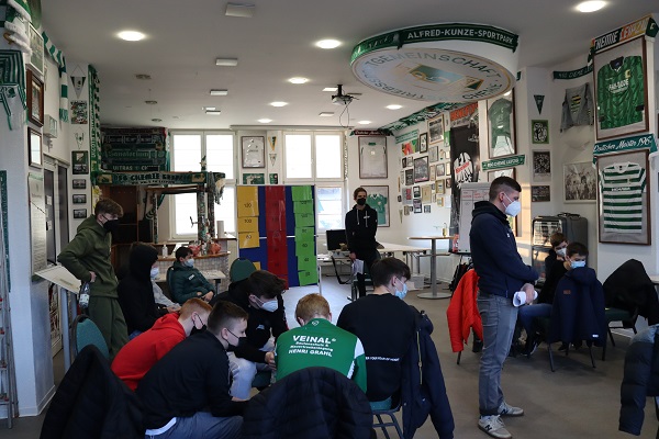 Am Montag gab es einen Workshop zu dem Thema “Diskriminierung im Fußball mit unseren C-Junioren. Mit der Quiz-Methode “Der große Preis” setzten sich die Teilnehmer mit den verschiedenen Diskriminierungsformen auseinander und tauschten sich intensiv untereinander aus. Außerdem diskutierten alle mit Hilfe von Beispielen Handlungsansätze bei diskriminierenden Vorfällen.