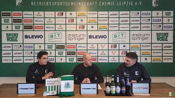Das Pressegespräch vor dem Auswärtsspiel der Chemiker beim 1. FC Magdeburg II am 18. Spieltag der Regionalliga Nordost 2025/26 (Sonntag, 07.12.2025, 14:00 Uhr, Avnet Arena/Heinz-Krügel-Stadion).