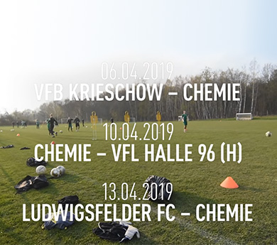 Mittwoch, 10.04.2019 – Anstoß: 18.00 Uhr NOFV-Amateur-Oberliga Staffel Süd – Nachholspiel vom 22. Spieltag BSG Chemie Leipzig – VfL Halle 96 Alfred-Kunze-Sportpark, Leipzig Ergebnis: 3:1 (2:0) Tore: 1:0 Daniel Heinze…